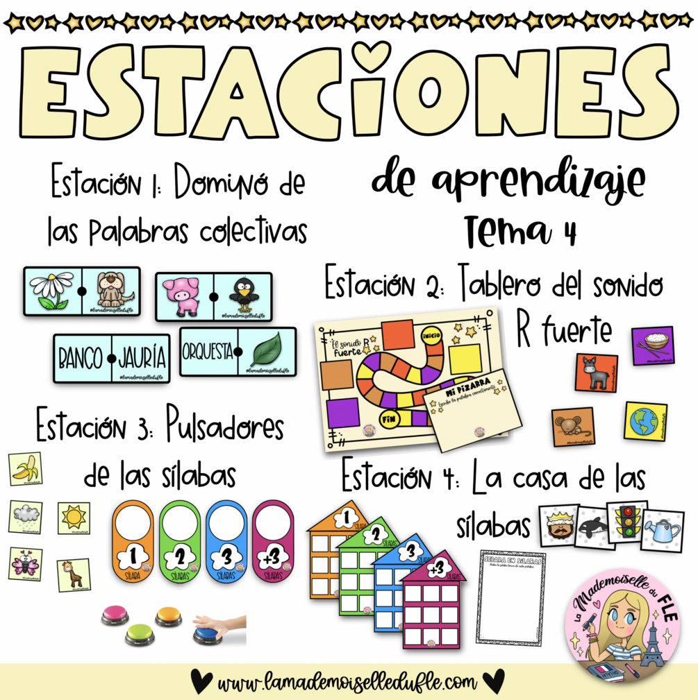 En este pack de materiales encontrarás varios PDF para trabajar los contenidos del cuarto tema de LENGUA de 3.º de Primaria, tales como las palabras colectiva, el sonido R fuerte, la sílaba y la noticia. Además, incluye cuatro estaciones de aprendizaje para repasar los contenidos jugando.