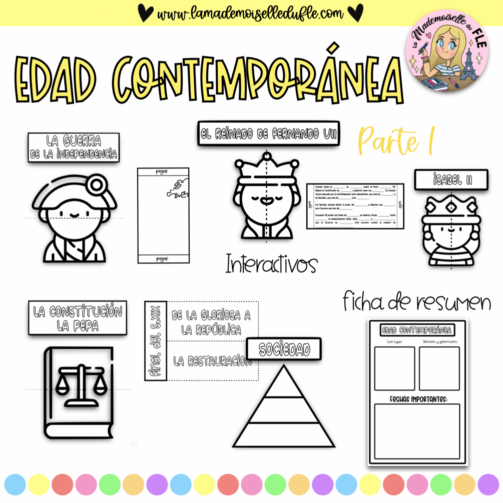 Este PDF incluye todos los interactivos para trabajar la guerra de la Independencia, la Constitución "La Pepa", el reinado de Fernando VII, Isabel II, la Primera República, la Restauración y la sociedad del siglo XIX.