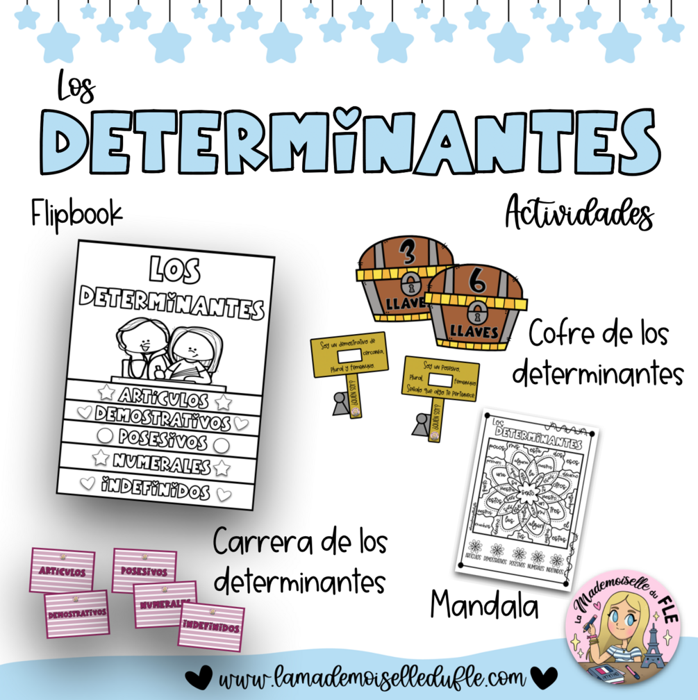 Este PDF de 54 páginas está compuesto por 4 actividades para trabajar en clase de Lengua los determinantes. Todas ellas con su explicación y material necesario para su desarrollo.